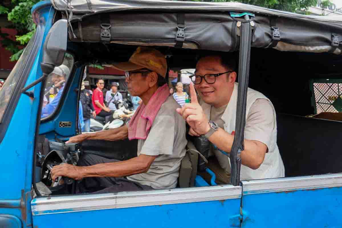 AKTUALITAS.ID – Calon Gubernur Jakarta Ridwan Kamil (RK) menumpangi Bajaj BBG usai menyapa para warga dan pedagang di Pasar Kebayoran Lama, Jakarta, Kamis (24/10/2024).