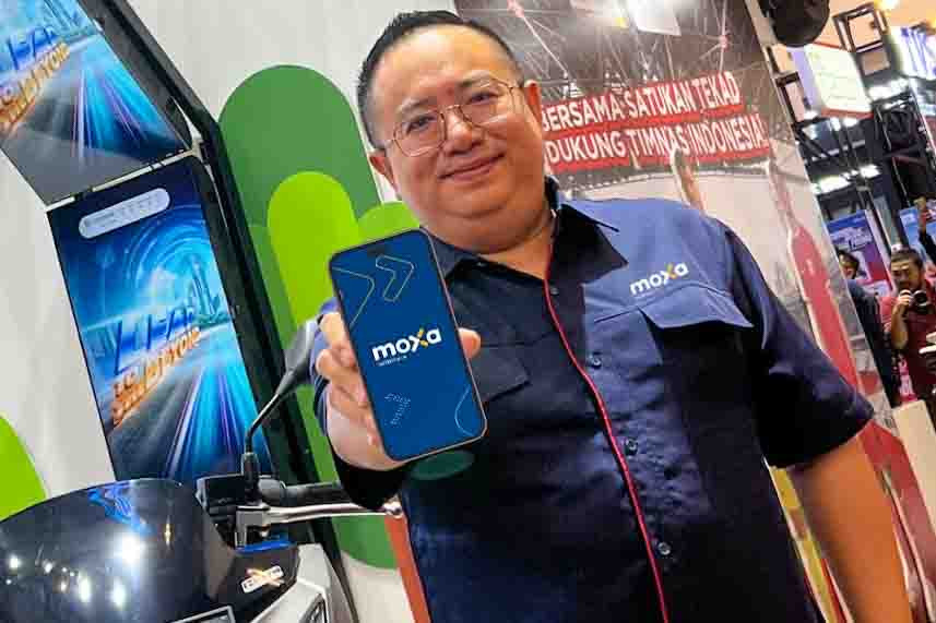 AKTUALITAS.ID – CEO Moxa Lim Lizal menunjukkan aplikasi MOXA Indonesia Motorcycle Show (IMOS) 2024 di Jakarta, Selasa (12/11/2024).