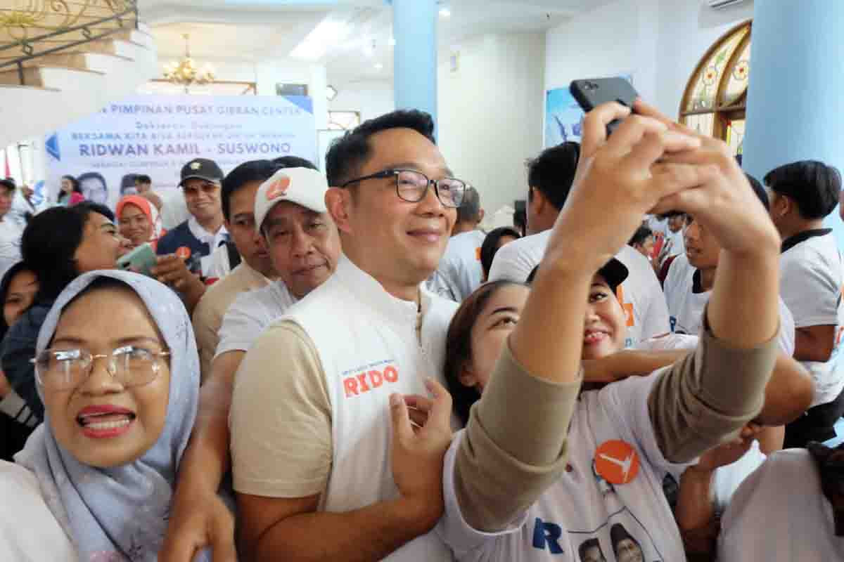 AKTUALITAS.ID – Calon Gubernur DKI Jakarta Ridwan Kamil berfoto bersama warga saat deklarasi di Rumah Gibran Center, Jakarta, Selasa (19/11/2024).