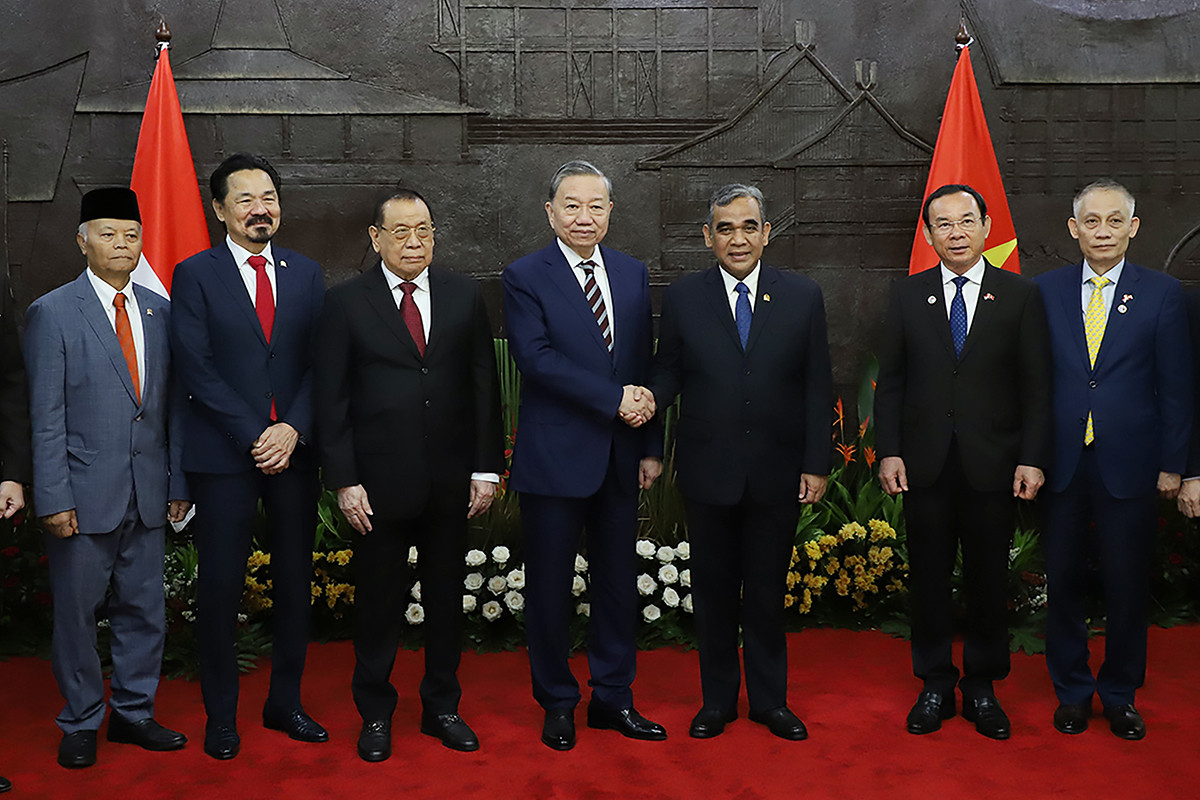 AKTUALITAS.ID – Ketua MPR Ahmad Muzani (kanan) bersama Sekretaris Jenderal (Sekjen) Partai Komunis Vietnam (PKV) To Lam (kiri) saat melakukan pertemuan di Kompleks Parlemen, Senayan, Jakarta, Selasa (11/3/2025). Kunjungan kenegaraan To Lam ke Indonesia tersebut menandai 70 tahun hubungan bilateral Indonesia dan Vietnam.