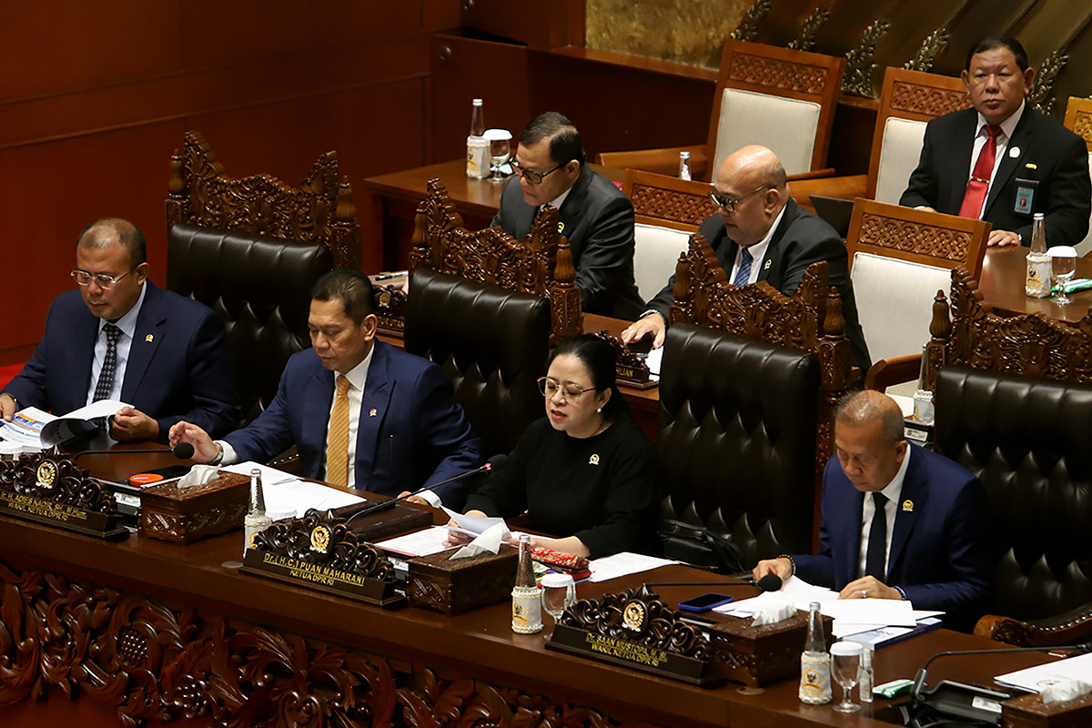 AKTUALITAS.ID – Ketua DPR Puan Maharani, menerima berkas pembahasan dari Menteri Keuangan Sri Mulyani Indrawati, pada Rapat Paripurna ke-18 Masa Persidangan III Tahun Sidang 2024-2025 di Kompleks Parlemen, Senayan, Jakarta, Selasa (20/5/2025). Menteri Keuangan Sri Mulyani Indrawati menyampaikan kerangka kebijakan ekonomi makro dan pokok-pokok kebijakan fiskal (KEM PPKF) tahun 2026 kepada Dewan Perwakilan Rakyat (DPR) RI. Sri Mulyani memaparkan, pertumbuhan ekonomi pada 2026 akan menghadapi berbagai dinamika, gejolak, dan ketidakpastian. Oleh karena itu, pertumbuhan ekonomi diusulkan berada pada kirsaran 5,2-5,8 persen, dengan target inflasi di rentang 1,5-3,5 persen. (AKTUALITAS.ID/Munzir)