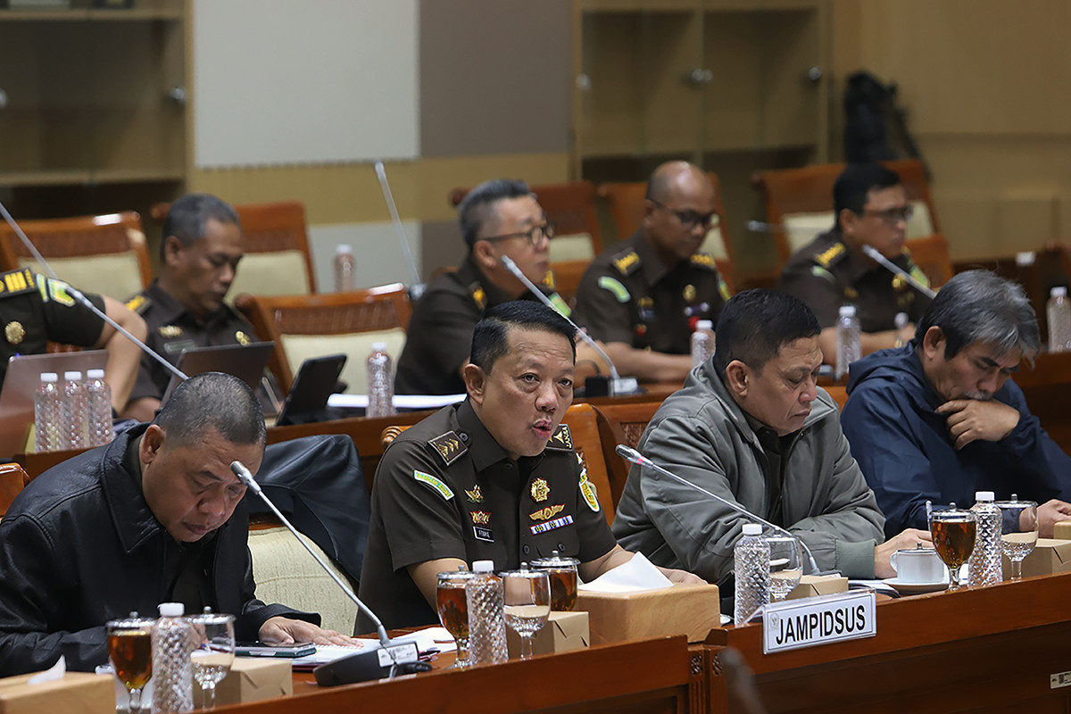Jaksa Agung Muda Tindak Pidana Khusus (Jampidsus) Febrie Adriansyah, menyampaikan paparan pada rapat dengar pendapat dengan Komisi III DPR di Kompleks Parlemen, Senayan, Jakarta, Selasa (20/5/2025).