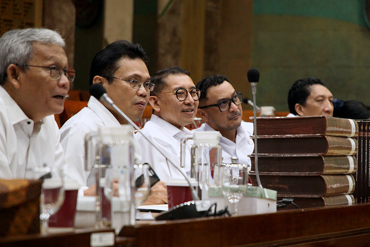 AKTUALITAS.ID – Menteri Kebudayaan Fadli Zon, didampingi Wakil Menteri Kebudayaan Giring Ganesha, menyampaikan paparan pada rapat kerja dengan Komisi X DPR di Kompleks Parlemen, Senayan, Jakarta, Senin (26/5/2025). Rapat tersebut membahas rencana penulisan sejarah Indonesia oleh Kementerian Kebudayaan. (AKTUALITAS.ID/Munzir)