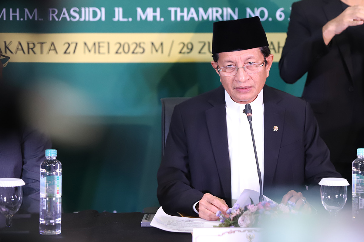 Menteri Agama Nasaruddin Umar, menyampaikan hasil sidang isbat penetapan 1 Dzulhijjah 1446 Hijriah di Kantor Kementerian Agama, Jakarta (27/5/2025).