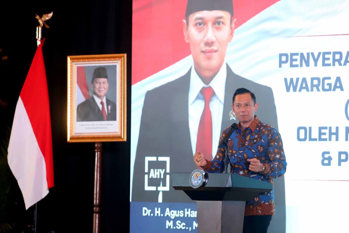 AKTUALITAS.ID – Menko Bidang Infrastruktur dan Pembangunan Kewilayahan (IPK) Agus Harimurti Yudhoyono (AHY) bersama Menteri Transmigrasi Iftitah Sulaiman Suryanagara melakukan penyerahan 1.120 sertifikat Hak Milik (SHM) warga Transmigrasi Lokal Sukabumi di Balai Makarti Muktitama, Kementrian Transmigrasi, Jakarta, Rabu 18 Juni 2025.