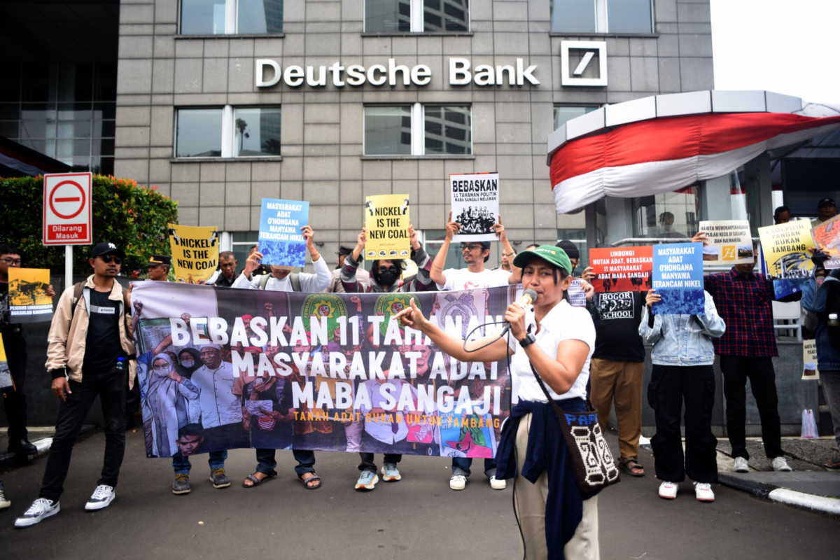 Aksi ini digelar bertepatan dengan agenda sidang lanjutan kasus 11 masyarakat adat Maba Sangaji, Maluku Utara. Mereka dituding melakukan pelanggaran hukum sejak April 2025 setelah menolak ekspansi tambang nikel yang merusak tanah dan hutan adat.