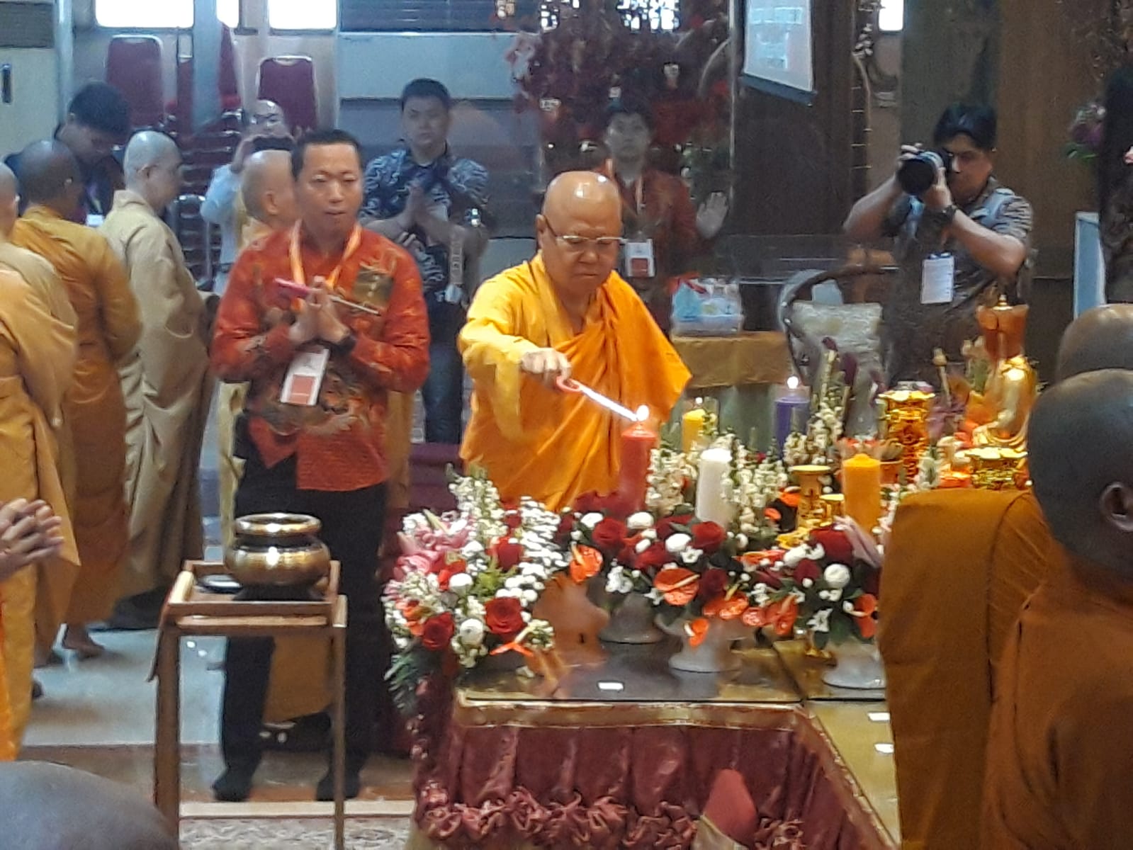 Perayaan yang berjalan dengan khidmat ini dihadiri 63 biksu dan biksuni anggota Sangha Agung Indonesia. Adapun jumlah umat Buddha yang hadir diperkirakan lebih dari 6.000 orang. AKTUALITAS.ID/Dede Kurniawan