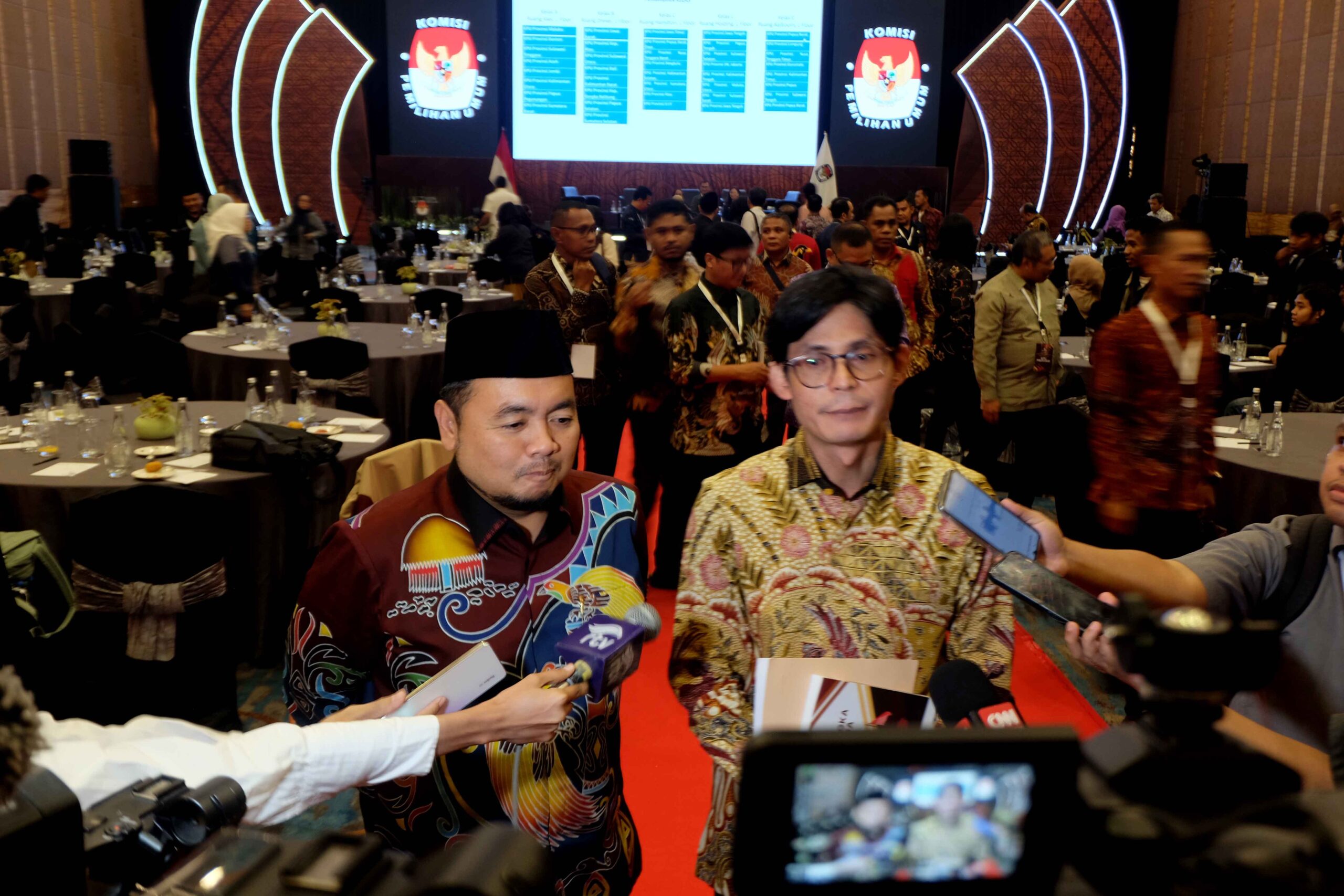 AKTUALITAS.ID – Ketua Komisi Pemilihan Umum (KPU) Mochammad Afifuddin bersama Anggota KPU August Mellaz menjawab pertamyaan wartawan usai acara Launching Indeks Partisipasi Pilkada di Jakarta, Sabtu 18 Oktober 2025.