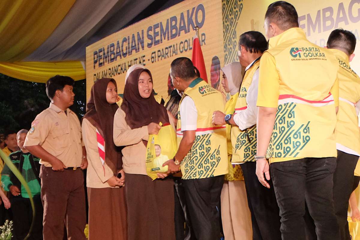 Dalam memperingati HUT ke-61 Partai Golkar membagikan, sebanyak 610 ribu paket sembako kepada masyarakat di seluruh Indonesia.