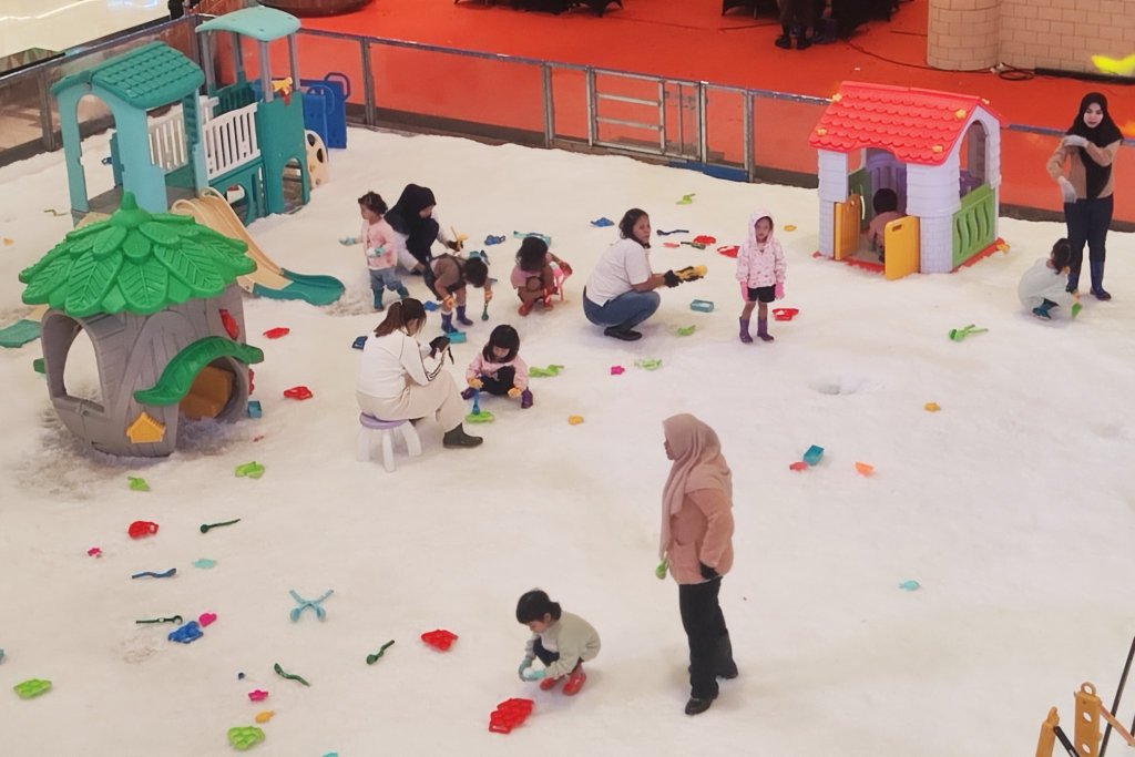 Wahana salju buatan ini menjadi salah satu atraksi libur Natal yang menghadirkan pengalaman musim dingin di dalam pusat perbelanjaan, sekaligus menarik minat pengunjung keluarga dan anak-anak selama masa liburan akhir tahun. AKTUALITAS.ID/ Dede Kurniawan