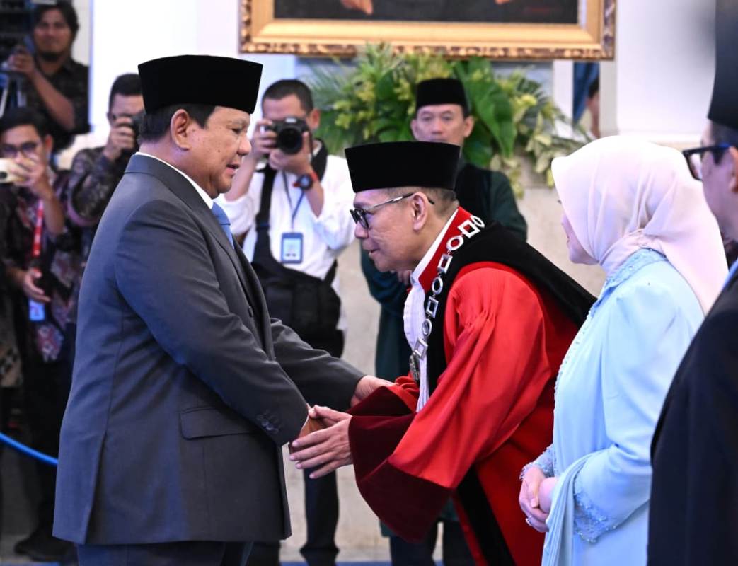 Presiden Prabowo Subianto menyaksikan pengucapan sumpah Adies Kadir sebagai Hakim Konstitusi di Istana Negara Jakarta, pada Kamis, 5 Februari 2026