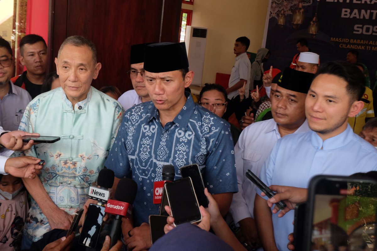 AKTUALITAS.ID – Menteri Koordinator Bidang Infrastruktur dan Pembangunan Kewilayahan, Agus Harimurti Yudhoyono bersama Pengusaha Jalan Tol Jusuf Hamka menghadiri kegiatan bantuan sosial (bansos) kepada para pengemudi ojek online (ojol) dan warga Tionghoa di Masjid Babah Alun, Jakarta, Rabu 11 Maret 2026.