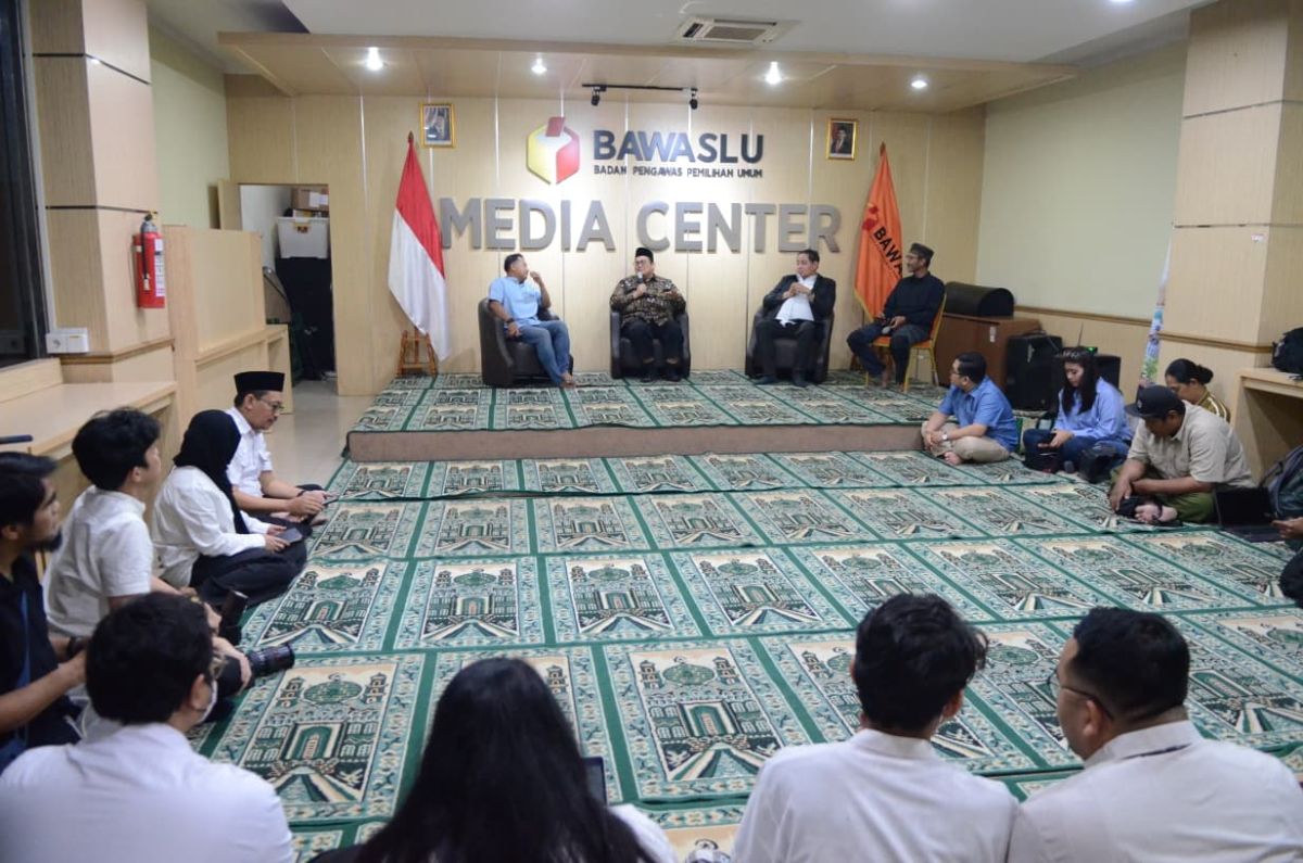 AKTUALITAS.ID – Ketua Badan Pengawas Pemilu (Bawaslu) RI Rahmat Bagja (kedua kiri) bersama Anggota Bawaslu, Herwyn J. H. Malonda (kedua kanan) dan Ketua KPPDEM Achmat Satryo (kanan) memberikan penjelasan saat Bawaslu menggelar buka puasa bersama wartawan dengan tema Penguatan Tata Kelola dan Akuntabilitas Kelembagaan Bawaslu di media center Bawaslu, Jakarta, Rabu 11 Maret 2026.