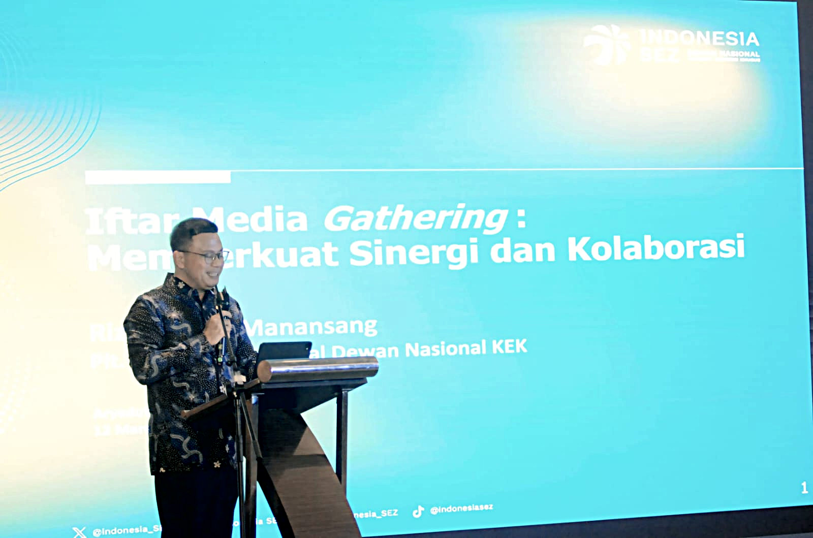 AKTUALITAS.ID – Plt. Sekretaris Jenderal Dewan Nasional Kawasan Ekonomi Khusus (KEK) Rizal Edwin Manansang memberikan penjelasan saat Sekretariat Jenderal Dewan Nasional Kawasan Ekonomi Khusus (KEK) menggelar kegiatan Iftar Media Gathering bertajuk “Memperkuat Sinergi dan Kolaborasi” di Hotel Aryaduta Menteng, Jakarta, Kamis 12 Maret 2026.