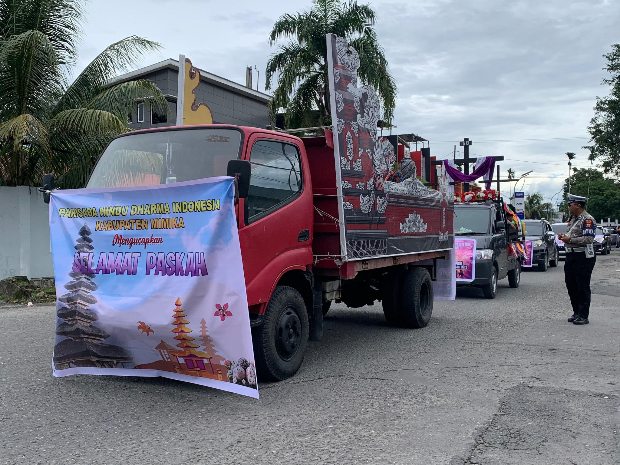 AKTUALITAS.ID – Deretan kendaraan hias melintasi Jalan Budi Utomo, Timika, menuju pusat pemerintahan dalam rangkaian Parade Paskah Lintas Agama, Selasa 7 April 2026.