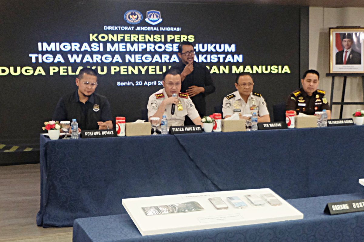 Ditjen Imigrasi pada Kementerian Imigrasi dan Pemasyarakatan memproses hukum tiga pria warga negara Pakistan berinisial SA, MS, dan MWK atas dugaan TPPM dengan cara mengorganisasi pemberangkatan sejumlah warga negara asing (WNA) ke Australia secara ilegal melalui jalur laut di wilayah timur Indonesia. AKTUALITAS.ID/ Dede Kurniawan