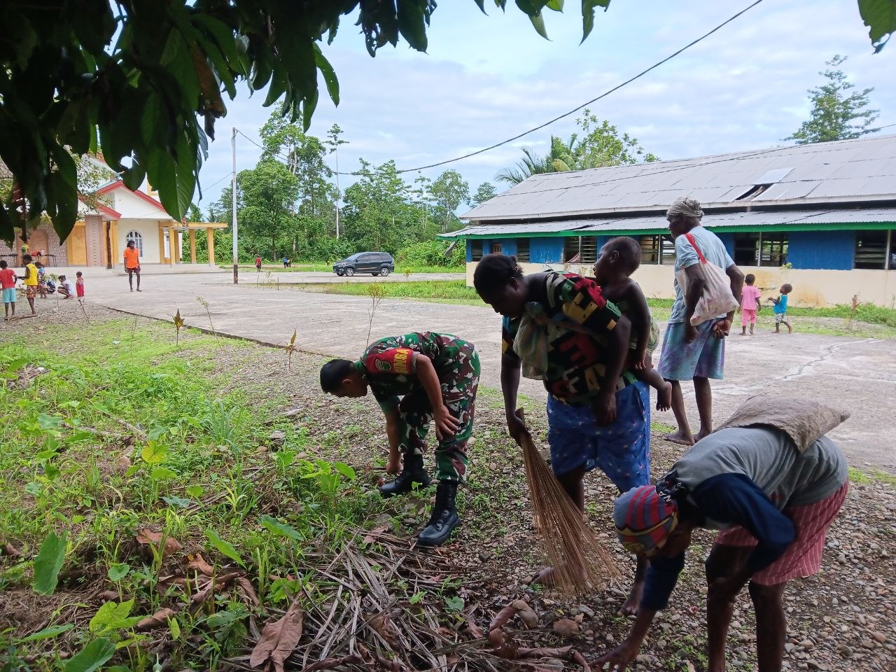 AKTUALITAS.ID – Dalam upaya mempererat hubungan dengan masyarakat sekaligus menjaga kebersihan lingkungan, Anggota Babinsa Koramil 1710-07/Mapurujaya, Pelda Sumantri dan Sertu Tangkas Budiono, mengajak warga melaksanakan gotong royong membersihkan halaman Gereja Santu Mikhael di Kampung Hiripau.