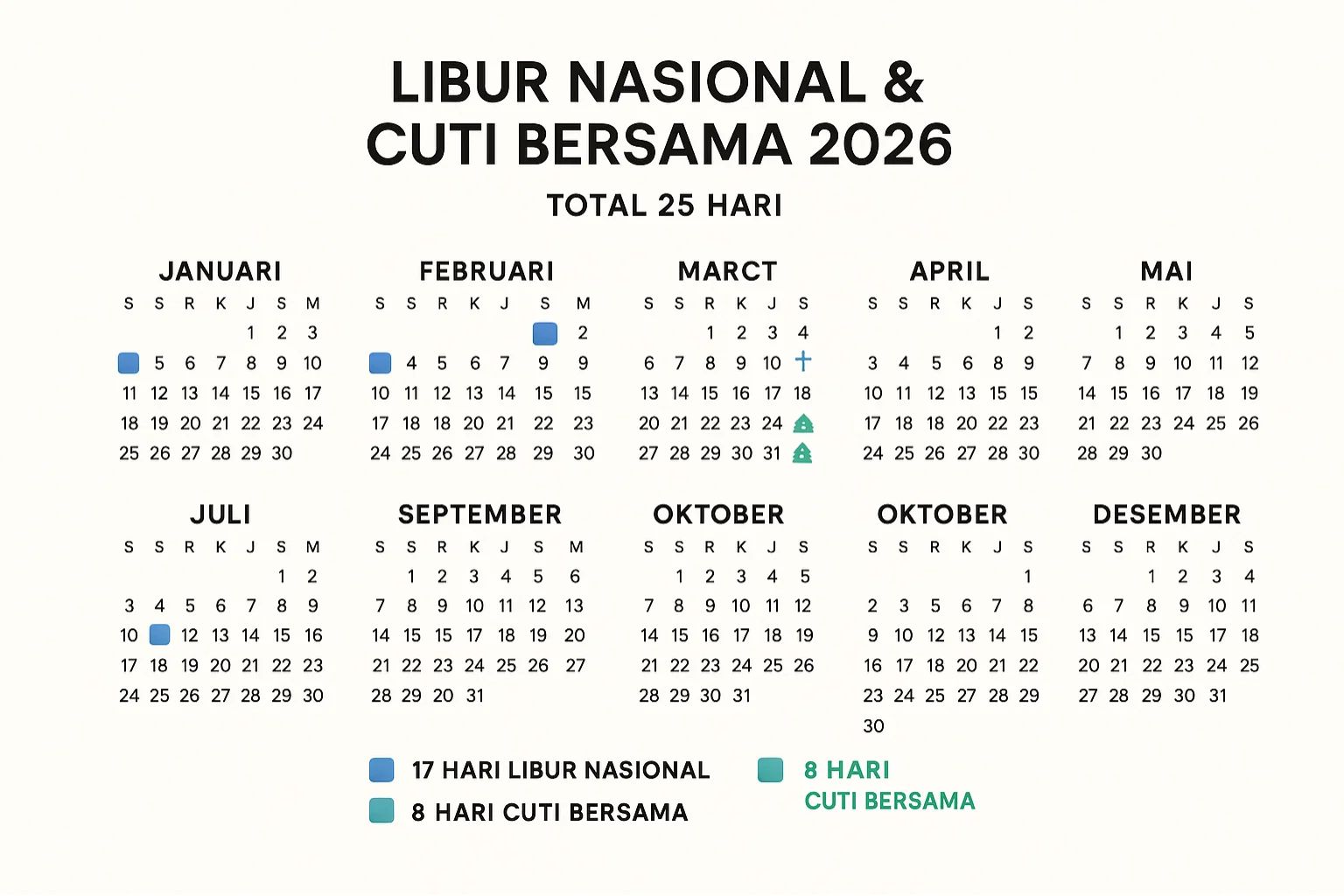 Dengan memahami susunan kalender 2026, daftar libur nasional, cuti bersama, dan momen long weekend, masyarakat dapat menyusun agenda tahunan secara lebih matang, baik untuk **kepentingan pekerjaan, pendidikan, mudik, maupun liburan keluarga. (Irawan/Mun)