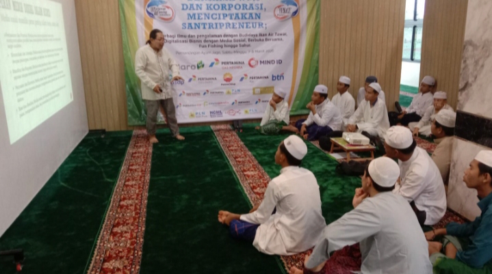 Anggota wartawan Mancing Indonesia, Bagus Indahono memberikan materi pelatihan kewirausahaan melalui media sosial ke santri dalam rangka mengisi waktu di bulan Ramadan dengan tajuk “Bersama WMI dan Korporasi, menciptakan Santripreneur; Berbagi Ilmu dan pengalaman dengan Budidaya Ikan Air Tawar, Digitalisasi Bisnis dengan Media Sosial, Berbuka Bersama, Fun Fishing hingga Sahur bersama.