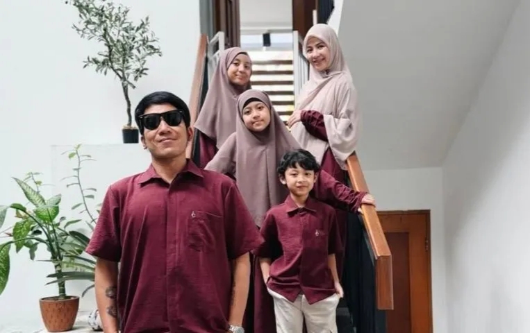 Desta dan Natasha, yang kini sudah tidak terikat hubungan suami-istri, tampil mengenakan busana serasi berwarna merah marun bersama ketiga anak mereka dalam salah satu foto yang diunggah di akun Instagram milik Natasha pada Hari Raya Idul Fitri, Sabtu (21/3/2026).