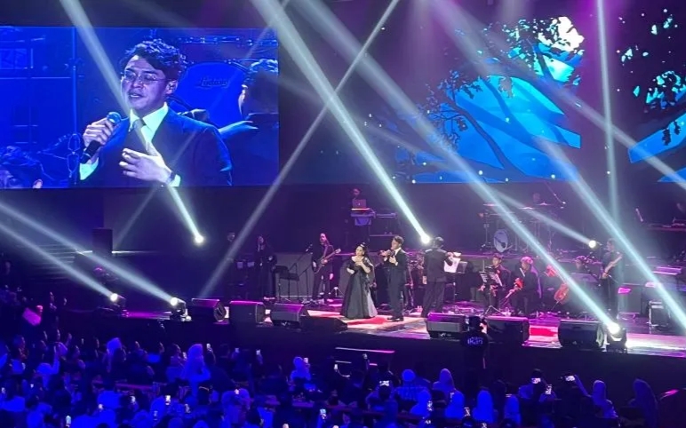 “Terima kasih sekali lagi, saya ada di sini sebagai musisi, penyanyi yang mengagumi musik tahun 80-an, 70-an. Tepuk tangan untuk senior-senior kita,” kata Ardhito Pramono, Jakarta, Sabtu (25/4/2026) malam.
