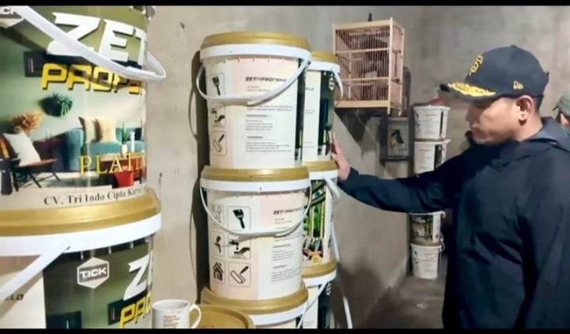 Hingga salah satu pelaku PM yang menawarkan cat murah itu berhasil diamankan bersama empat rekannya, Sl, Su, Is dan, MM. Dari hasil penggeledahan di temukan sebanyak 134 ember Cat Merk Zet Ls Profshiel Platinum ukuran 20 kilogram yang disimpan dalam rumah dan dalam mobil Suzuki APV.