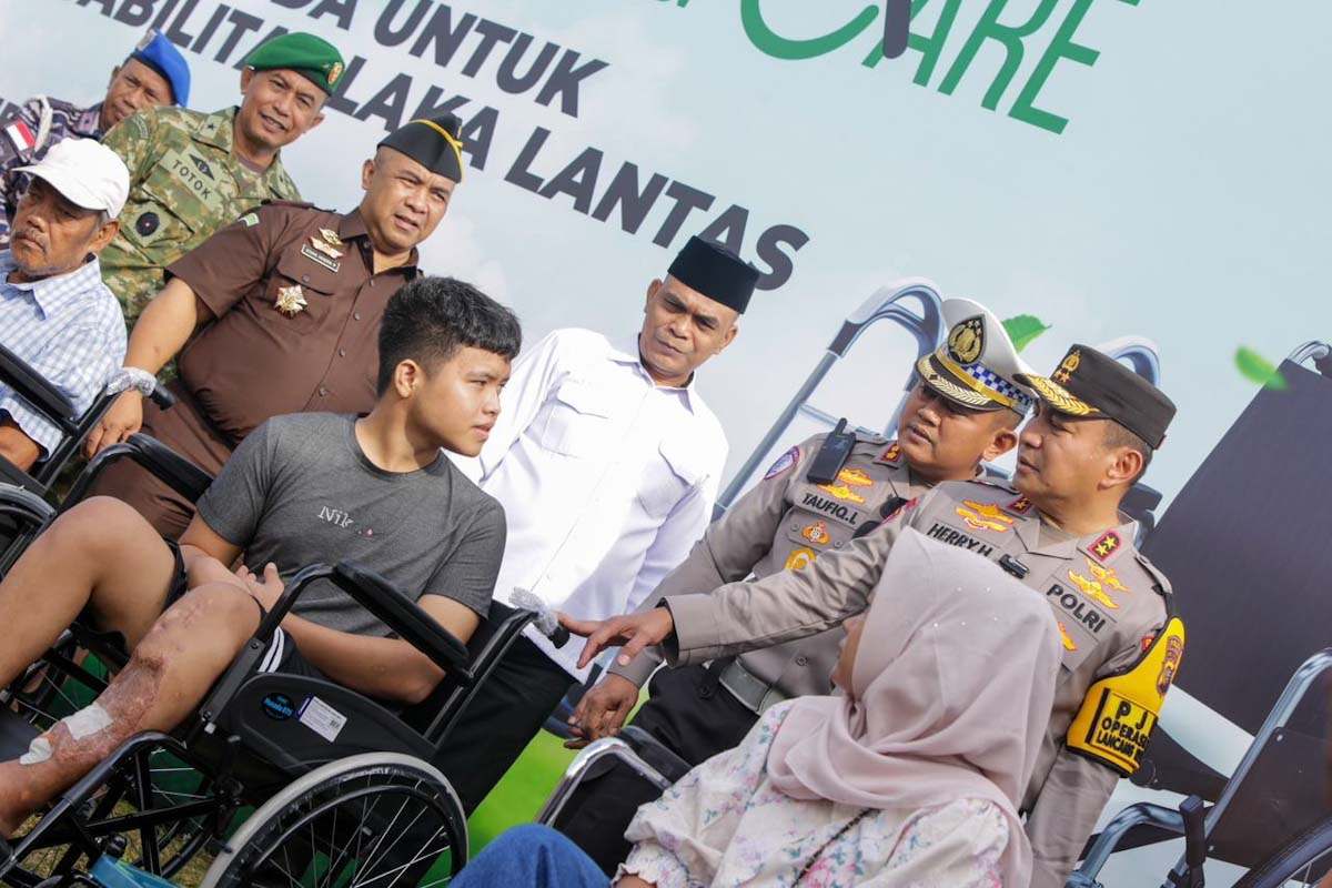 Pada kesempatan tersebut, Kapolda bersama Dirlantas menyerahkan bantuan sosial berupa delapan kursi roda, tiga tongkat bantu, dan 40 helm SNI kepada korban kecelakaan lalu lintas, pengemudi ojek online, serta masyarakat yang membutuhkan.