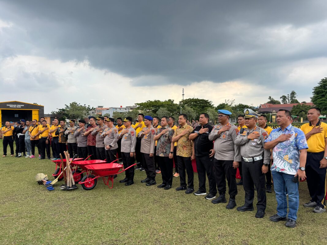 “Dalam pelepasan kali ini, Polda Riau mengirimkan 3.459 unit peralatan pemulihan berupa 945 angkong, 1.256 cangkul, dan 1.258 sekop,” jelas Kombes Ino.